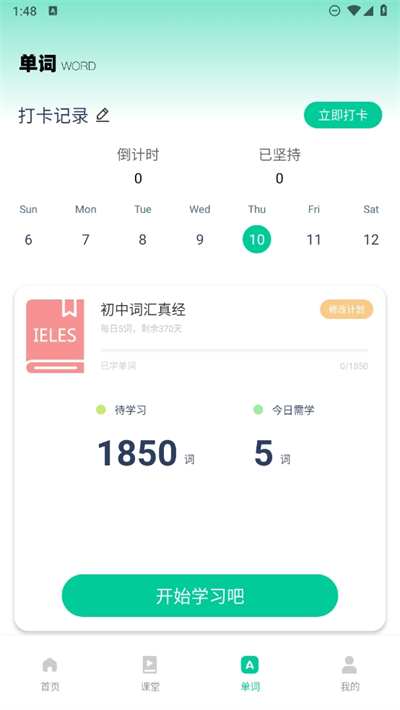 3、为了能够更好的督促大家学习,在这里可以每天学习知识并设置一个专属的打卡计划;