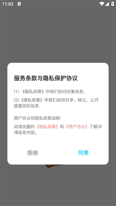 1、打开软件之后阅读隐私政策和用户协议,点击同意之后就能进入到软件;