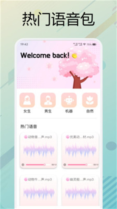 各种各样热门的语音包内容都应有尽有,还能够选择女生或者是男生等语音包的内容进行使用。