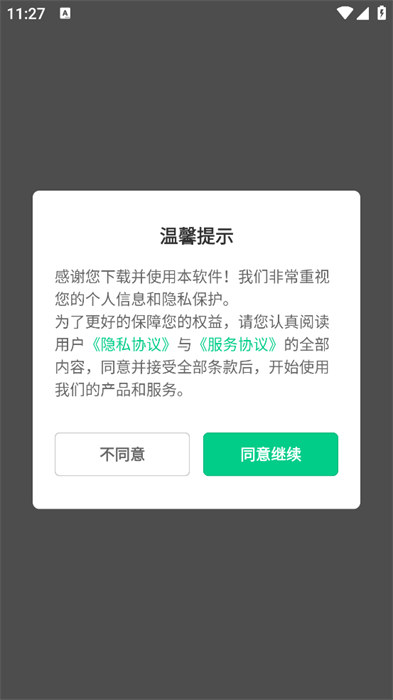 1、打开软件之后阅读隐私政策和用户协议,点击同意之后就能进入到软件;