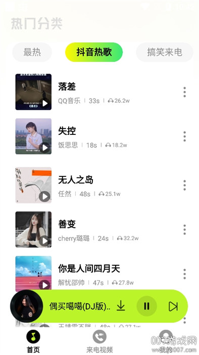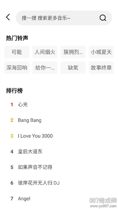 可以看到来电铃声的榜单情况,第一时间就能够了解到最新热门的来电铃声资源。