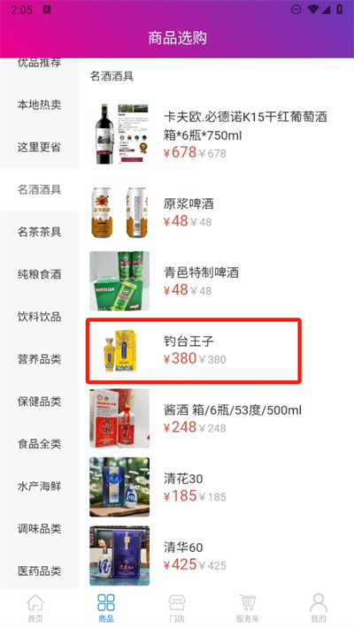 1、我们进入软件后可以在商品这一栏找寻所有的商品分类;