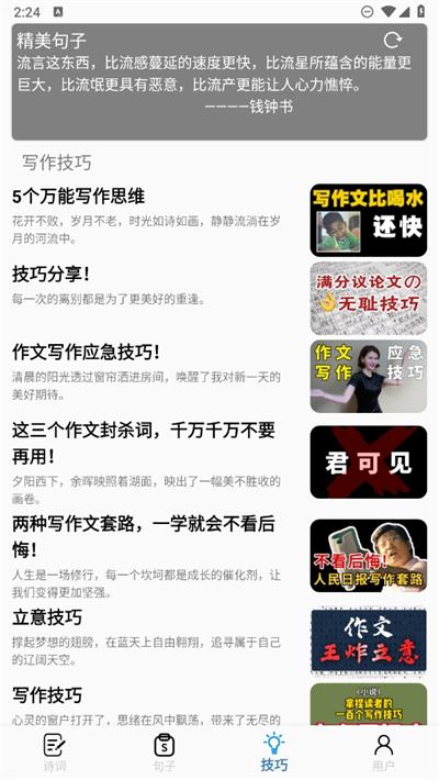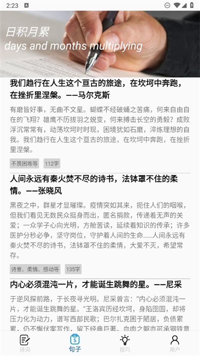 2、在句子中可以日积月累学习更多有品质的句子文章学习;