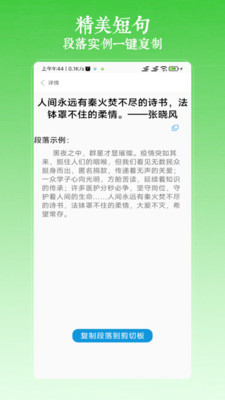 内置多个不同的热门作文的模板学习,查看到作文中究竟有哪些精彩的模板;