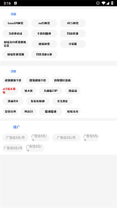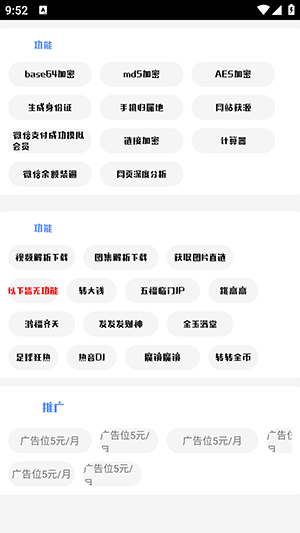 2、进入后能够看到各种实用功能的分类,带大家看看有哪些功能;
