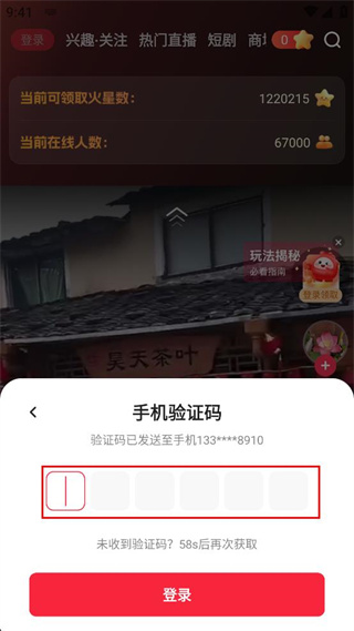 4、在手机验证码输入区域,填入收到的验证码,随后点击登录按钮完成操作。