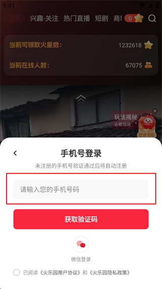 4、输入用户们自己个人的手机号和验证码就能进行账号登录的操作,也能选择微信一键直接进行登录。