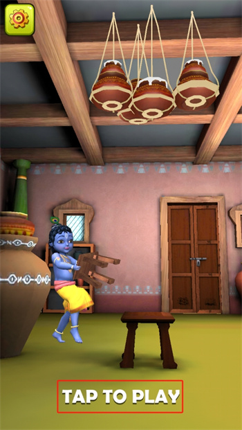 3、来到一段剧情演示中,可爱的小克里希纳正在搬起凳子够上方的陶罐,可恶的普塔娜却进来将所有的陶罐都给破坏了,你将踏上追铺他的道路之上展开激烈追逐;