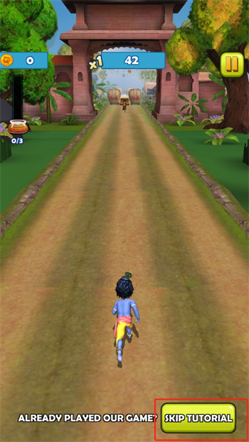 4、随后踏上无尽挑战障碍的追击跑酷之旅中,点击下方的【SKIP TUTORIAL】正式开启这个追逐游戏,成功将敌人追逐到就可以完成任务;