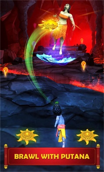 小克里希纳跑酷是一款前往神秘的西域展开刺激的跑酷游戏,在这里操控一个叫做小克里希纳的角色,在充满障碍的道路之上不断追铺邪恶的普塔娜,她是个犯尽坏事的大坏蛋,只有将其抓捕住才可以完成跑酷挑战,克服重重充满危机的障碍危难挑战,灵活点击屏幕之上的角色,上下左右的移动在躲避障碍的时候,还需要收集金币,解锁更多的道具帮助增加挑战成功率。