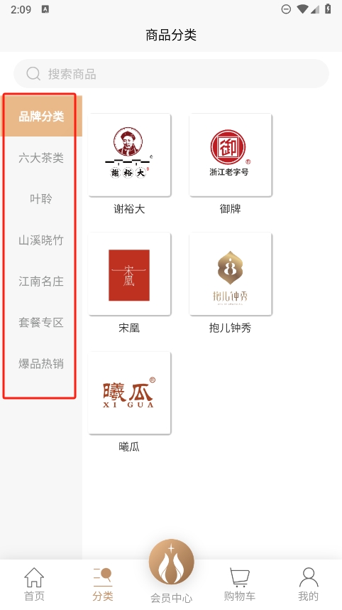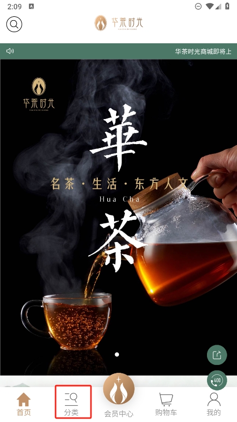 1、进入软件后可以看到有关该平台的各种功能,面对茶叶的购买上我们可以在分类中进行查找;