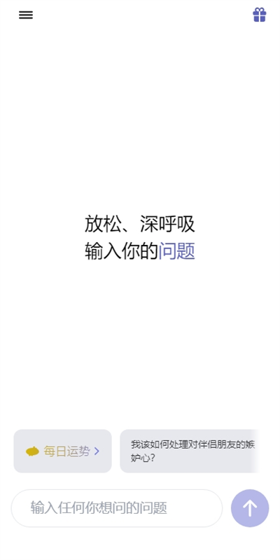 1、进入软件后我们可以通过提问的方式进行测算,放轻松、深呼吸输入你想要咨询的问题;