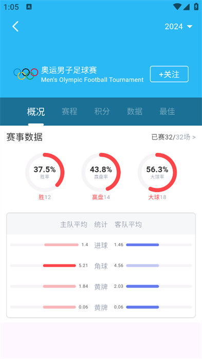 3、点击自己想要查看的比赛之后就会为用户们呈现出更加清晰明了的赛事数据信息;