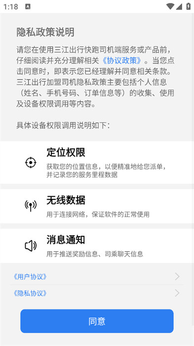 1、打开软件之后阅读用户协议和隐私政策的内容,点击同意之后就能进入到软件;