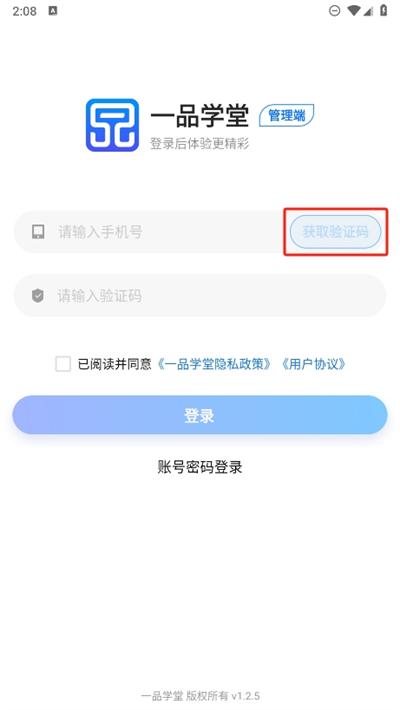 2、进入软件后再登录的过程中需要输入注册的手机号,然后点击获取验证码即可获取验证码登录;