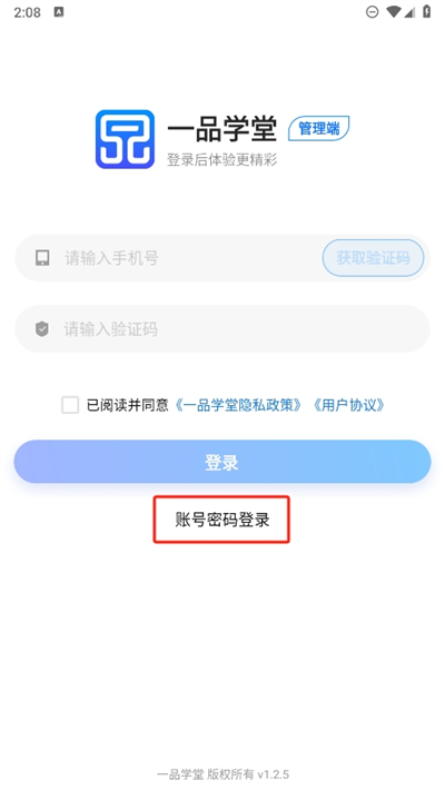 3、当然在登录的过程中不仅仅支持验证码的登录,还支持账号密码的登录这样登录更加的安全;