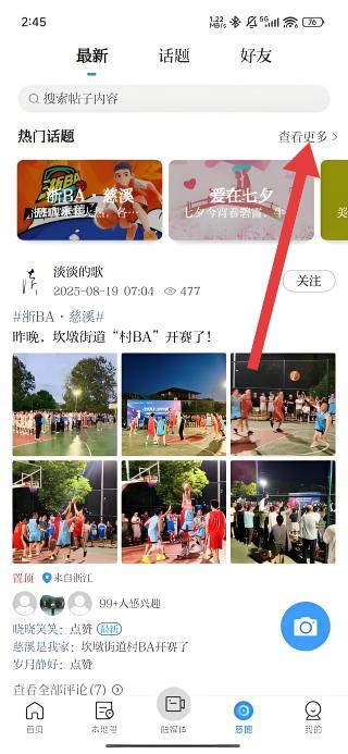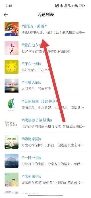 3、进入话题列表后,选择如#浙BA·慈溪#等感兴趣的话题,查看该话题下的详细内容与互动信息。