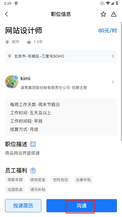 5、线上也可以直接与招聘放取得联系,能够更加轻松的完成工作相关内容的沟通满足求职的选择。