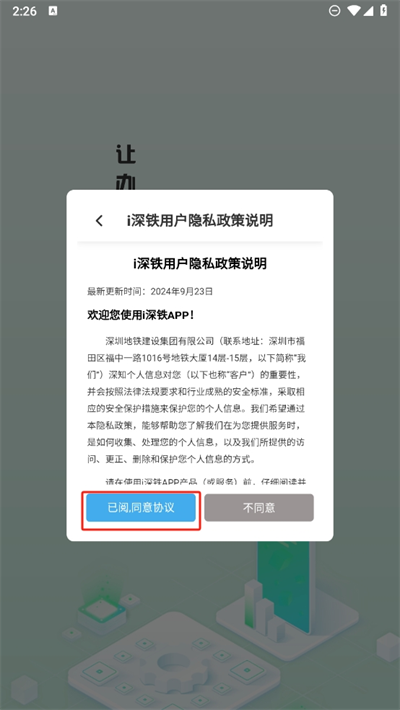 4、同时我们也要注意需要同意该软件的使用许可服务协议和隐私保护政策后,方可进入软件使用。
