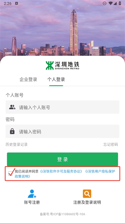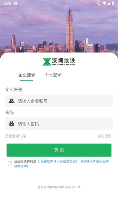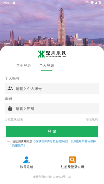 3、这里是个人登录账号界面,我们需要输入自己注册的个人账号并输入密码后就可以直接进入;