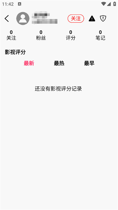 5、可以看到自己关注的用户数量和粉丝数量,还能看到自己发布的影视评分内容。