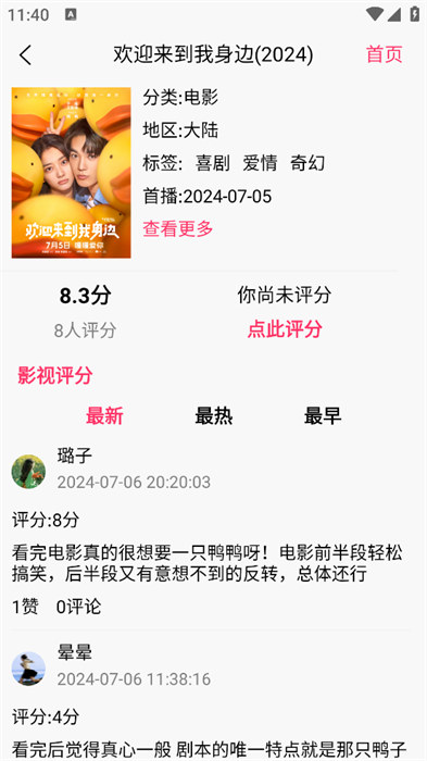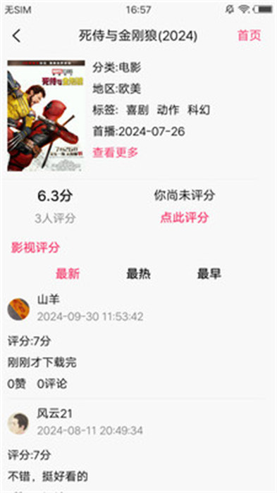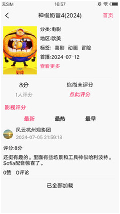 3、点击自己想要了解的影视资源内容的评分就能看到真实的评价信息和评分情况;