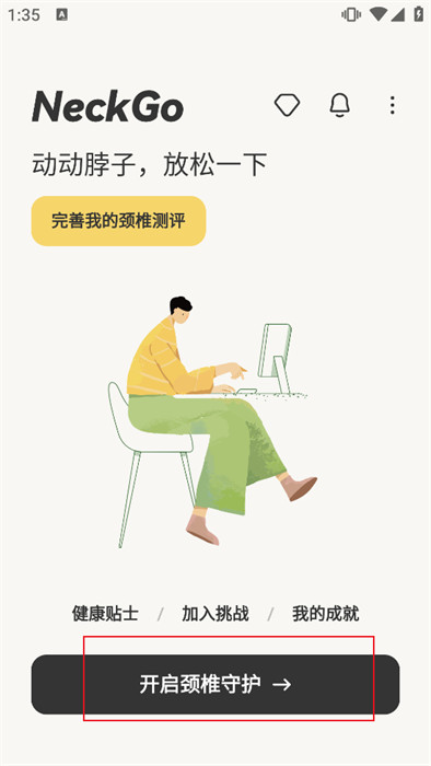 3、接着,进入到首页,点击【开启颈椎守护】,如下图,随后会继续跳转页面;