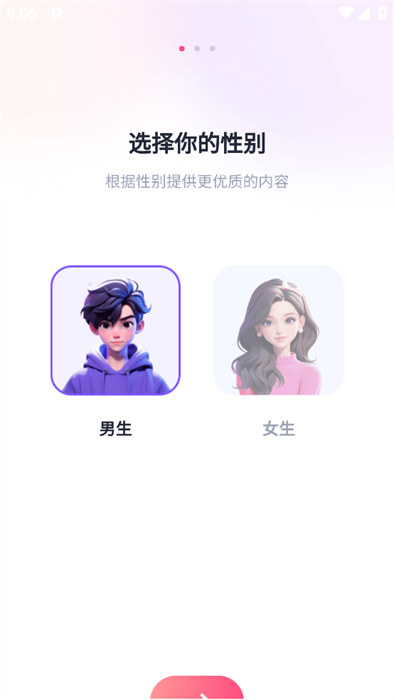 3、可以选择用户们自己个人的性别之后点击下一步;