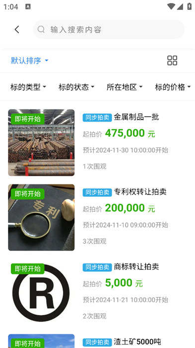 用户们可以看到关于拍卖商品资源内容的公告信息,及时的就能了解到最新的拍卖公告信息;