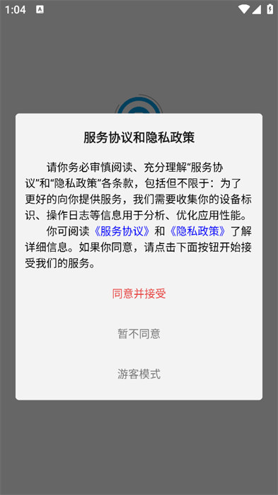 1、打开软件之后阅读隐私政策和用户协议,点击同意之后就能进入到软件;