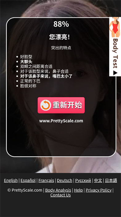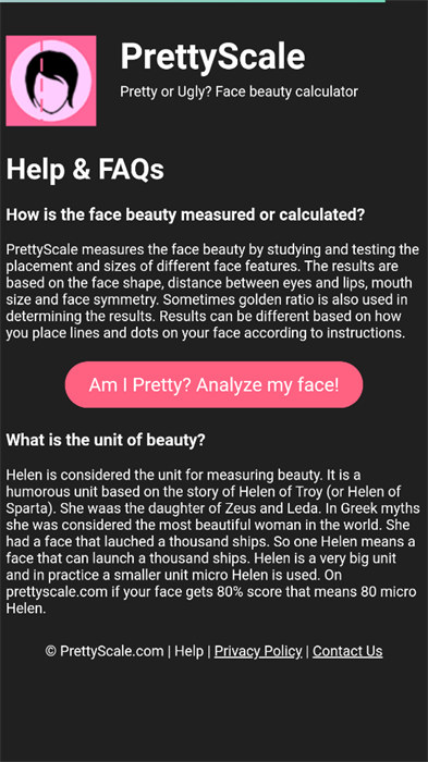 prettyscale app是一款专门为了用户们去进行测试打造出来的软件,这款软件里面拥有十分丰富的测试内容,可以上传自己的照片通过大数据去分析自己的颜值是多少分,对人像可以进行动态扫描的操作,让测试出来的结果可以更加的贴近真实情况,更加详细的告诉用户们测试出来的脸型并且会对用户们的妆发提出建议,帮助用户们可以把自己打扮的更加的好看魅力,全部都是一些非常实用的功能内容供用户们去进行使用,使用自己所需要使用的功能内容就可以了。