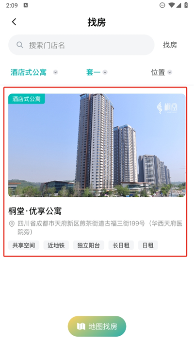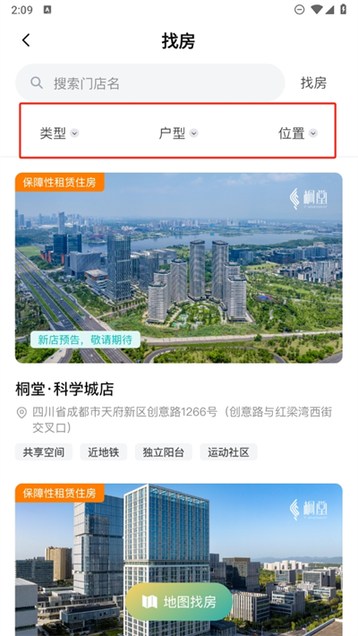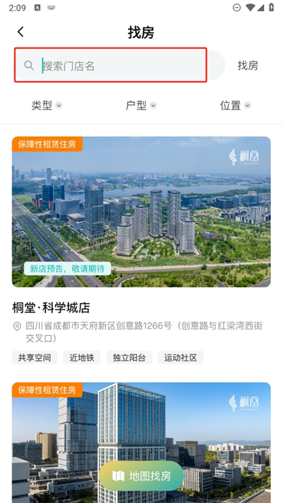 2、如果有知道的门店可以直接通过搜索快速的找寻房子,如果没有可以通过条件筛选找寻;