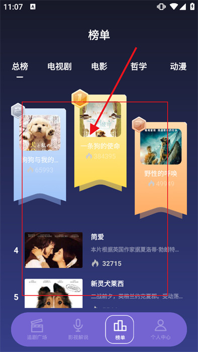 3、接着,切换到【榜单】页面,这里对热门的电影进行了排名,且会不断的进行更新;
