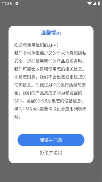 1、打开软件之后阅读隐私政策和用户协议,点击同意之后就能进入到软件;