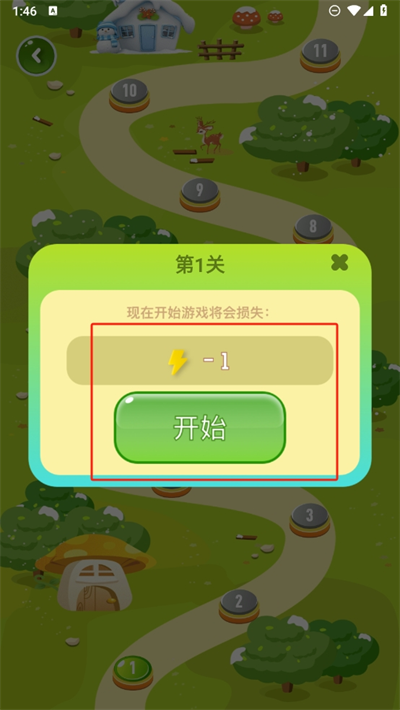 3、进入后选择关卡进行挑战,点击关卡挑战后可以看到每一次游玩都需要消耗一个精力点;
