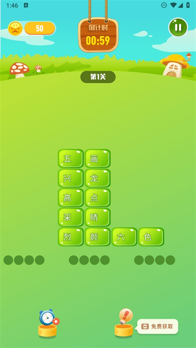 4、进入后就可以看到游戏玩法了,在散乱的成语文字中找寻正确的成语并进行点击消除即可。