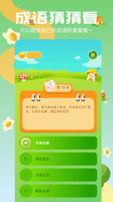 支持多种不同的成语教学模式选择,比如成语猜猜看、成语消消乐等不同模式;