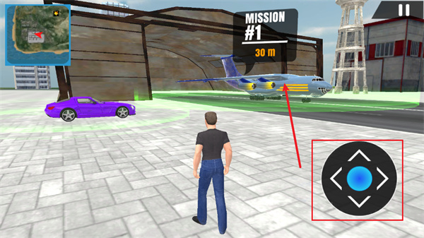 5、移动屏幕右下角的圆形按钮,以靠近前方的飞机,使得自己能够顺利的开启飞机的驾驶。
