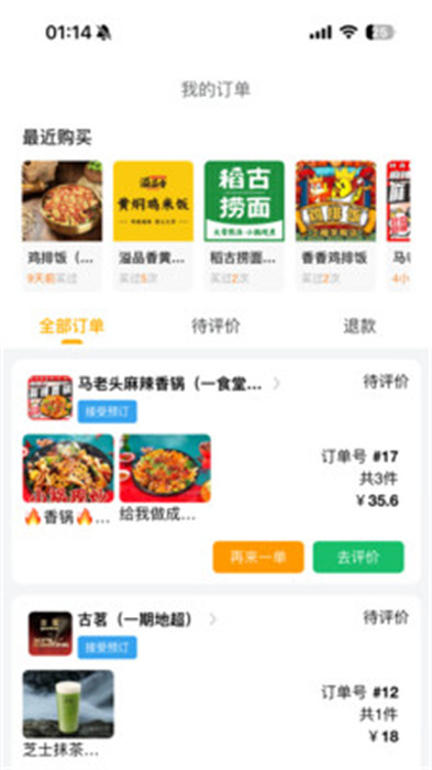 查看到自己购买过的历史订单信息,方便用户们吃到好吃的外卖的时候从历史订单里去寻找;