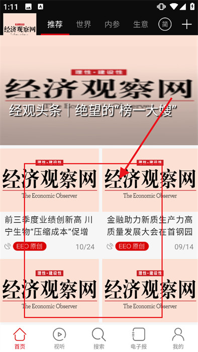 2、随后,可在首页上挑选自己喜欢的新闻,这里每天都能进行更新,轻松就能持续阅读;