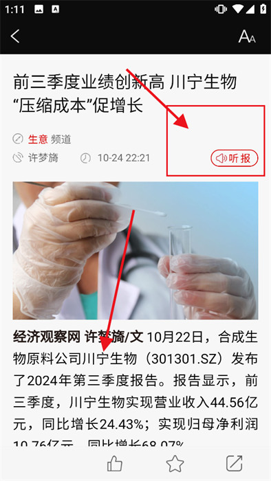 3、接着,进入其中可以点击【听报】这样就无需眼睛来看,减少视觉上的压力;