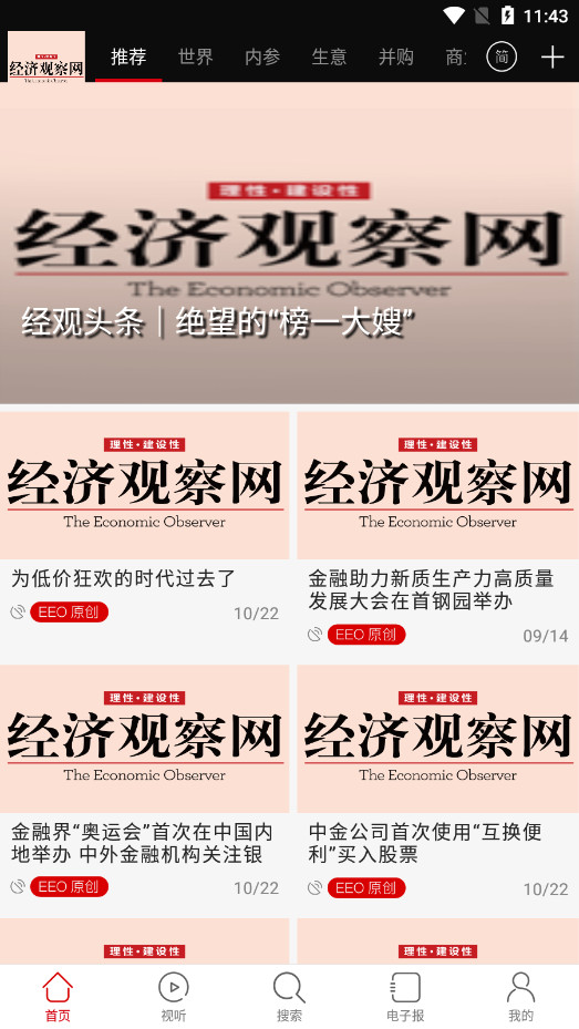 经济观察网app是一款专门给更新当前社会经济情况的软件,这里给大家呈现了很多权威的经济想法,并且对未来的经济发展做出了非常优质的预测,随时都能在线了解财经状态,同时能对自己的财务也进行有效的管理,不仅如此,当前软件内的新闻数据都能长期更新,方便给大家提供一些有效的价值,并且在这里长时间的使用,会给自己的手机造成一些缓存困扰,平台会定期自动清理来维持流畅性,如果你也相对当前社会的经济情况有更深入的了解,快来小编这里下载吧!