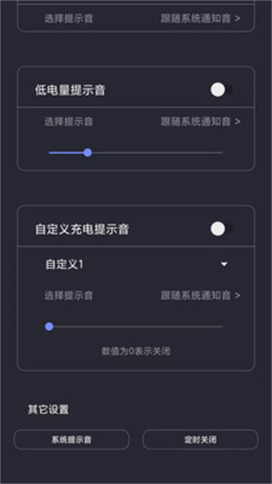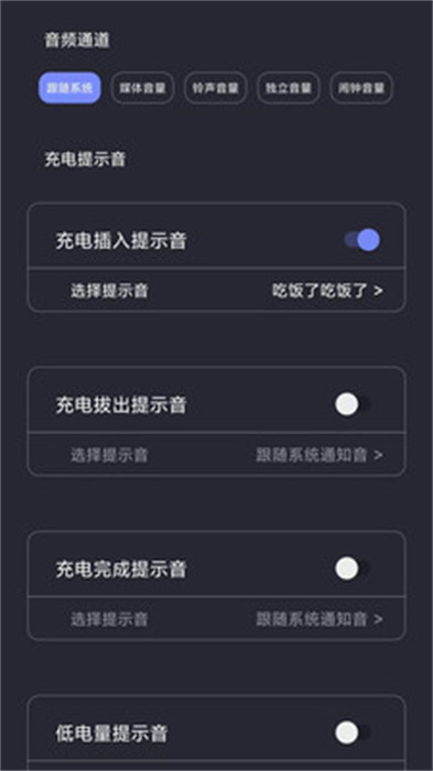 可以根据用户们自己个人的使用需求实时的调整充电提示音的音量,还能够选择自己手机本地里面的音频;
