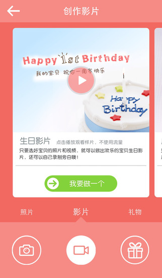 提供给周岁宝贝的爸爸妈妈用自己拍摄的照片和视频,为宝贝制作周岁影片和成长照片。