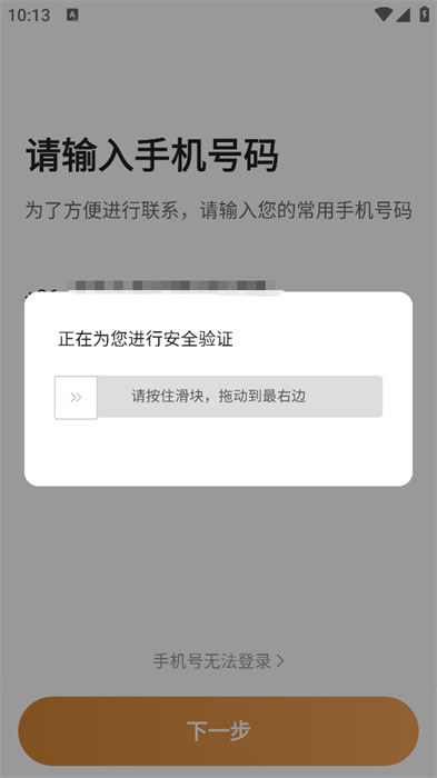 3、按住滑块拖动到最右边完成安全验证之后就能接收到验证码;