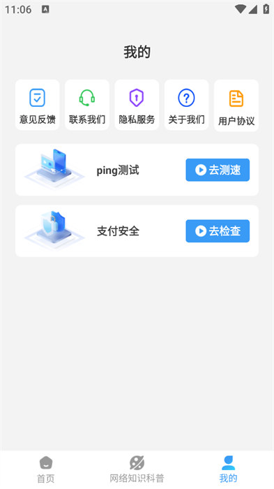 5、在我的里面可以进行意见反馈和支付安全的测试等。