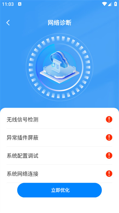 1、进入到软件之后首先可以诊断一下自己的网络状况,去进行优化的操作;