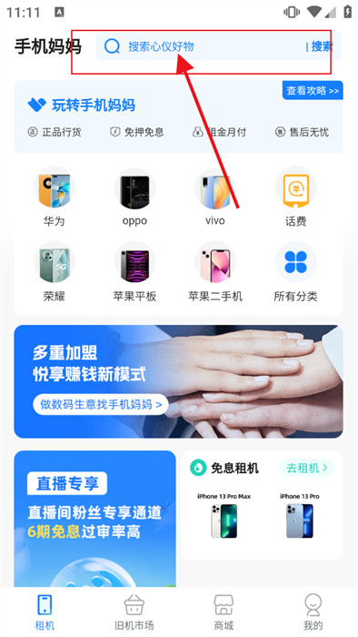 3、接着,你可以在这里挑选一个自己喜欢的商品,并在线租机或者购买设备,十分的方便;