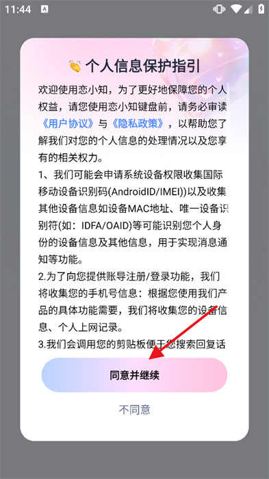 1、首先,将软件从桌面上打开,并进入其中,这里需要点击【同意】,如下图;