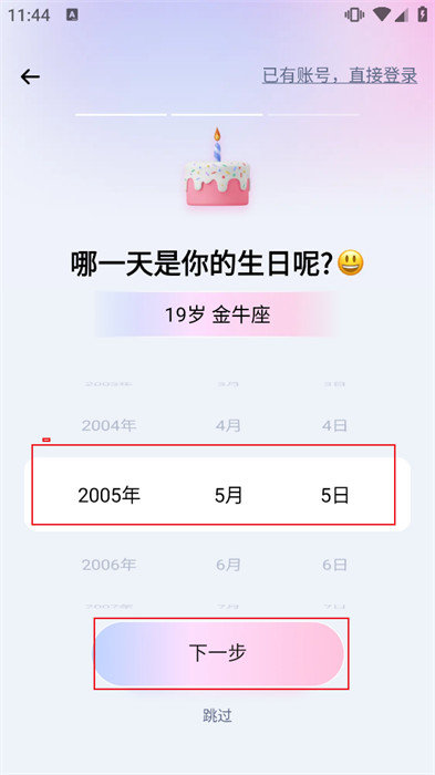 3、接着,还需要按照这里的要求设置自己的生日,并继续点击【下一步】如下图所示;